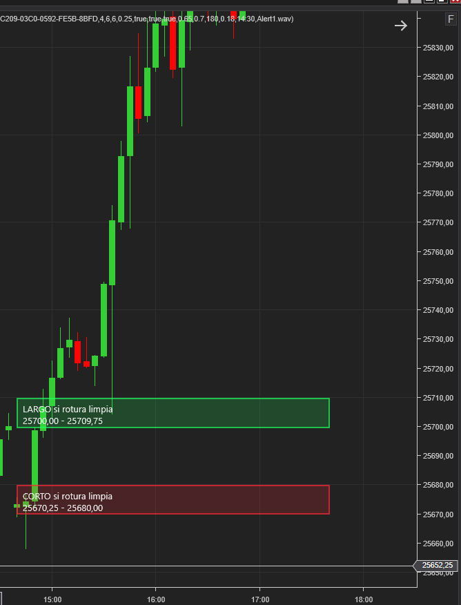 TSZONES automatically locates and draws at 14:30 (Spain time) the trading and contract auction zones: areas where the market tends to concentrate real order matching, absorb liquidity, and make it clear who’s in control.